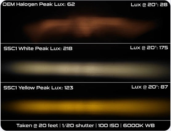 From there, while other options on the market lose as much as 10% of the light output shining through an outer lens, the custom-molded TIR optic in the SSC1 serves as both the optic and main lens for greater efficiency and light output (patent pending). Thanks to this innovative feature, when coupled with high-intensity LED chips, the total intensity of the SSC1 is much greater than other LED pods using basic optics or reflectors with a standard outer lens.
